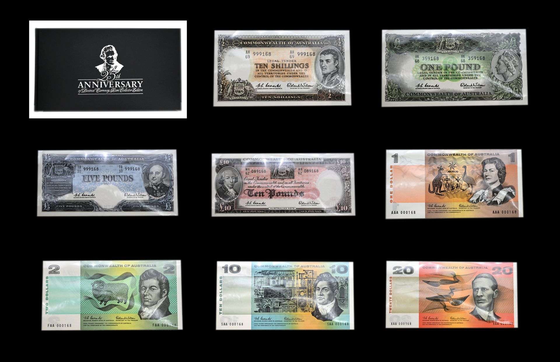 Note Printing Australia and the Reserve Bank released only 800 rare banknote portfolios to commemorate the 25th anniversary of decimal currency in 1991.