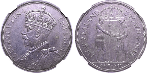 1935 New Zealand Proof Waitangi Crown, NGC PF66